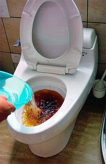 Solutions for toilets that flush slowly due to partial blockages in the trap or sewer junction, restoring proper flushing pressure and function.